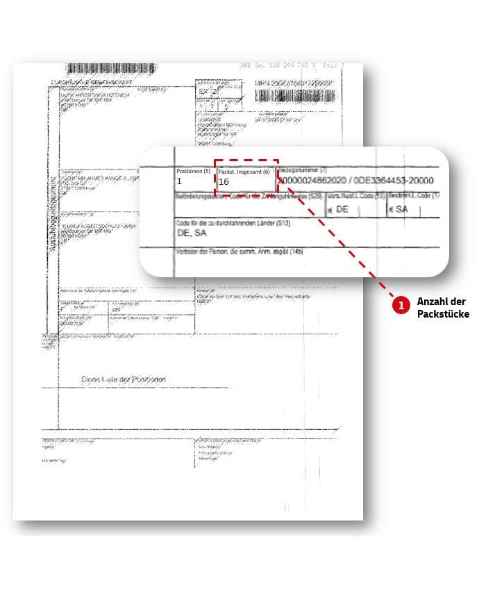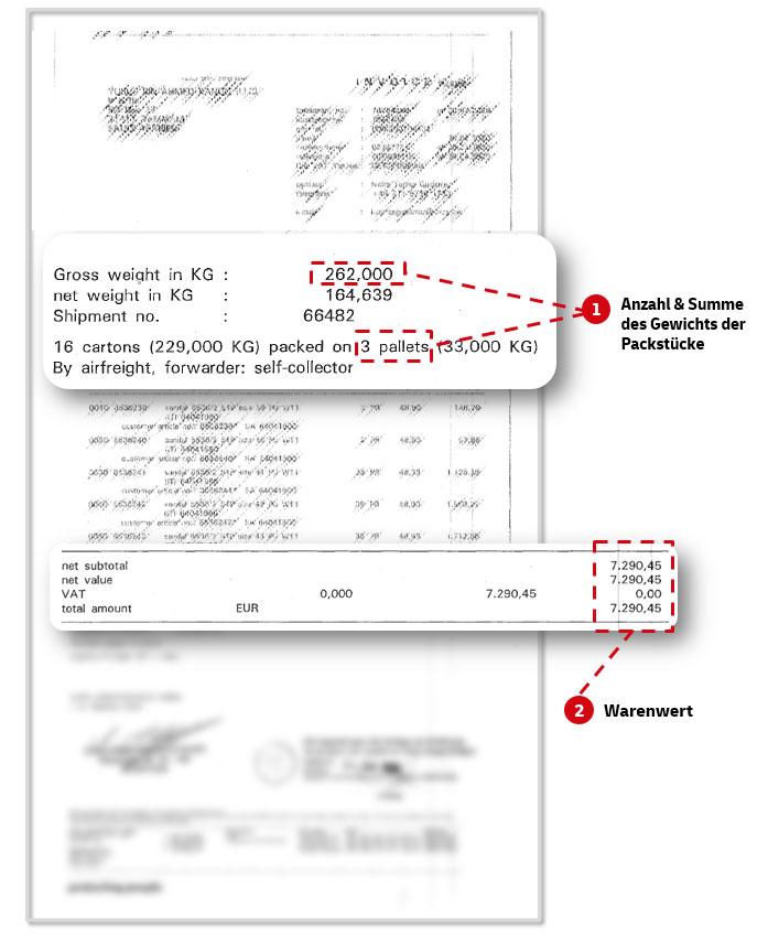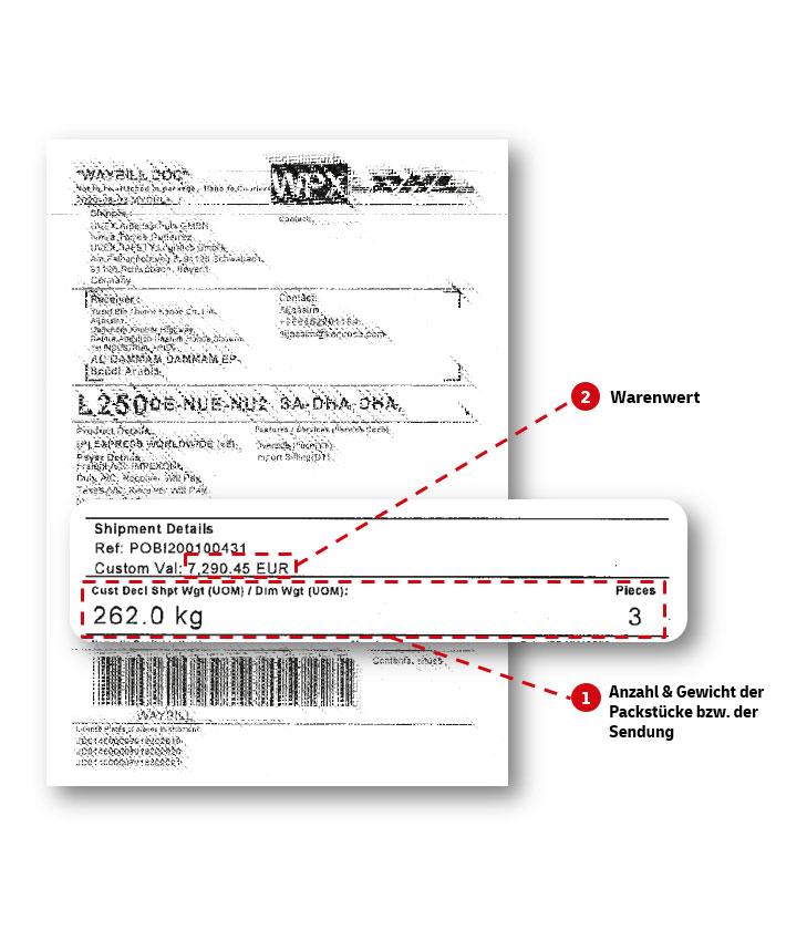 Übereinstimmende Angaben auf Sendungslabel und Zolldokumenten
