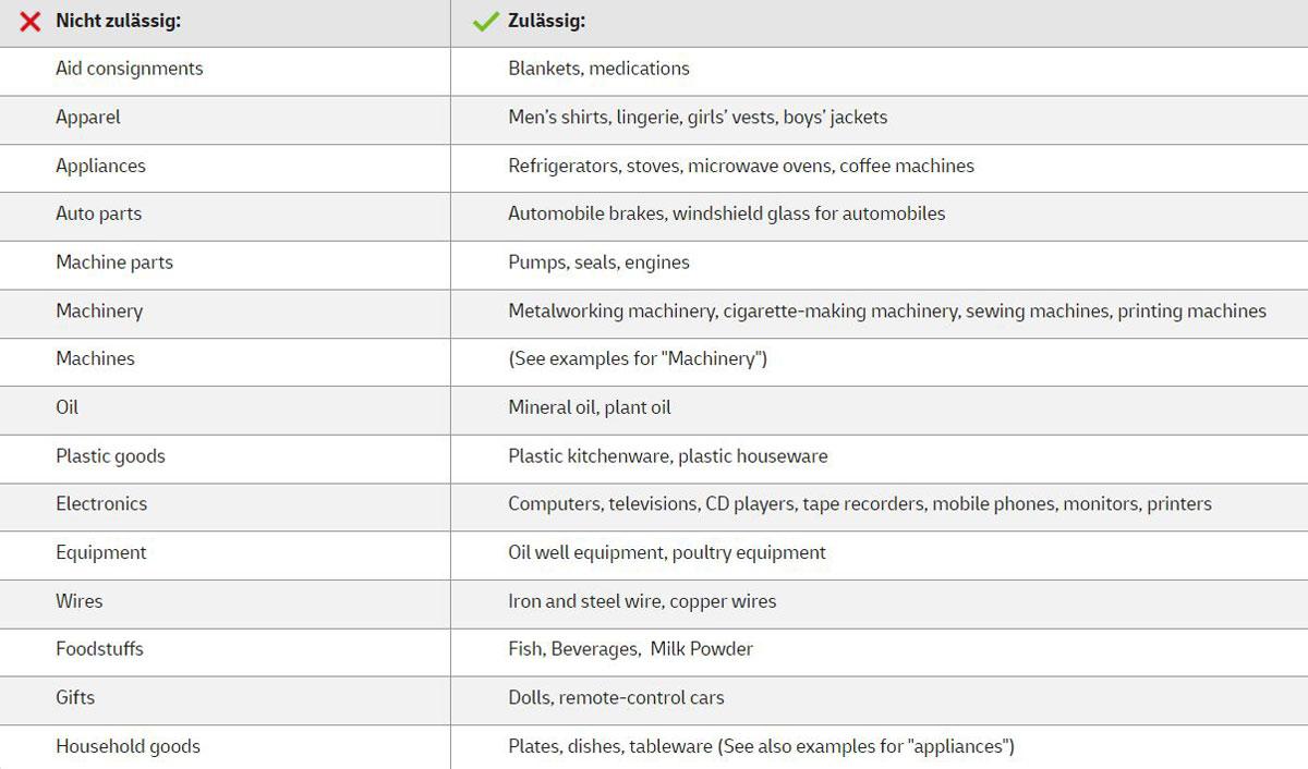 Beispiele für nicht zulässige und zulässige Warenbeschreibungen