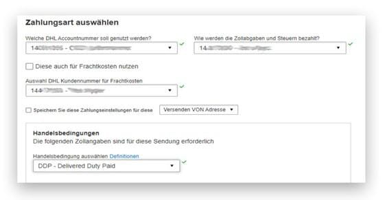 Transportkosten & Zölle/Steuern | Versender oder Dritter |