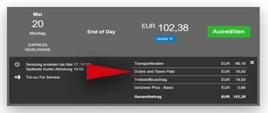 Verfügt der Zahler der Einfuhrabgaben über ein eigenes Aufschubkonto, entfallen die Kosten für den Service Duty Tax Processing.