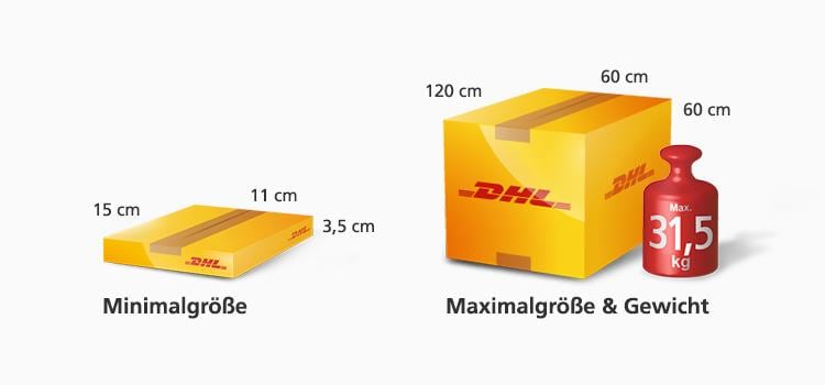 - in Quaderform die Höchstmaße des DHL Europakets von 120 x 60 x 60 Zentimeter übersteigen