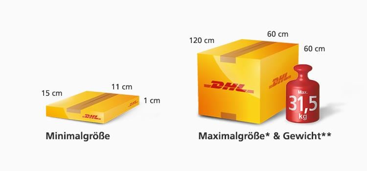 • in Quaderform die Höchstmaße des DHL Pakets International von 120 x 60 x 60 Zentimeter übersteigen