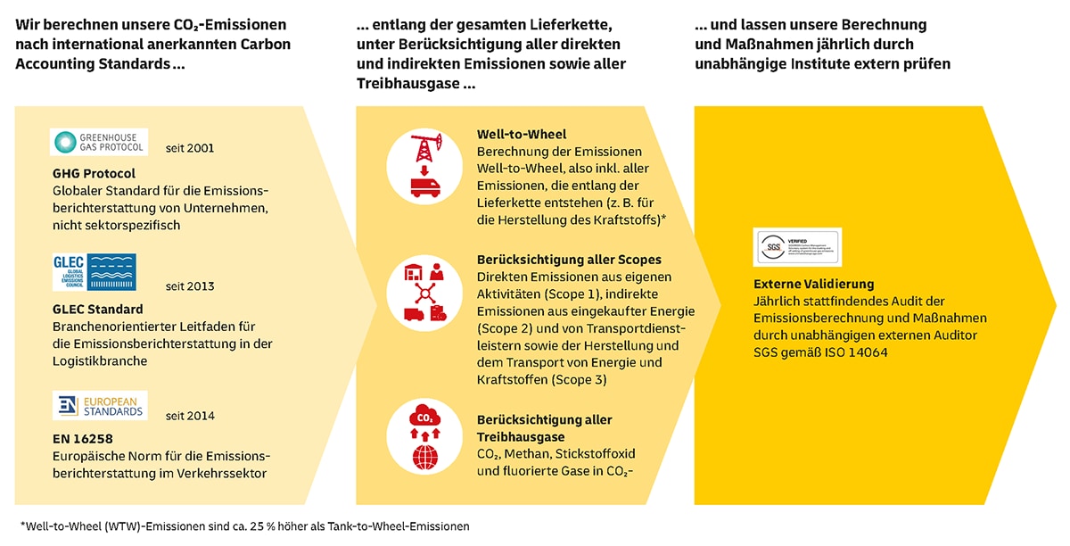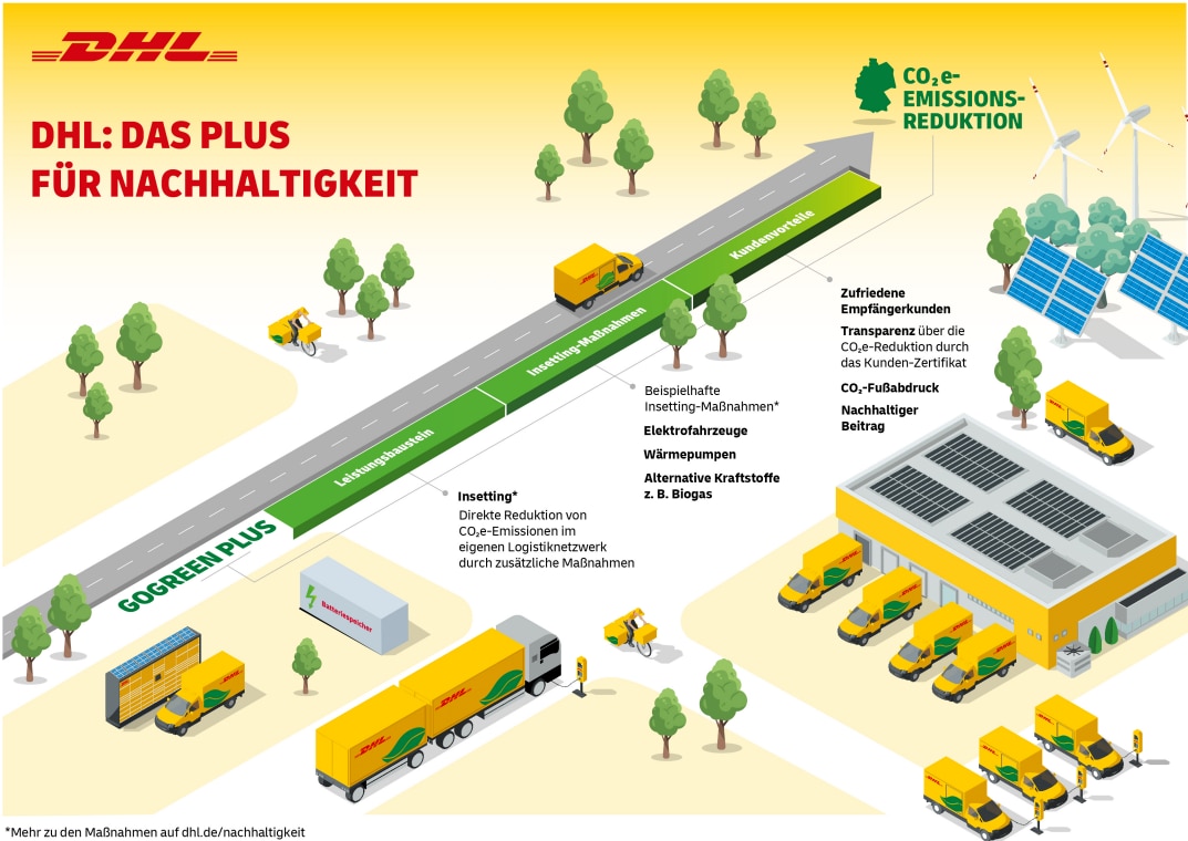 In Ihrem GoGreen Plus Zertifikat werden wir Ihnen außerdem Ihre Verbesserung der CO2e-Emissionsintensität ausweisen. Die "Verbesserung der CO2e-Emissionsintensität" (= CO2e-Emissionen pro Sendung) gibt bei einer CO2e-Reduktionsmaßnahme eine zusätzliche Perspektive über das Ausmaß der Emissionsverringerung.