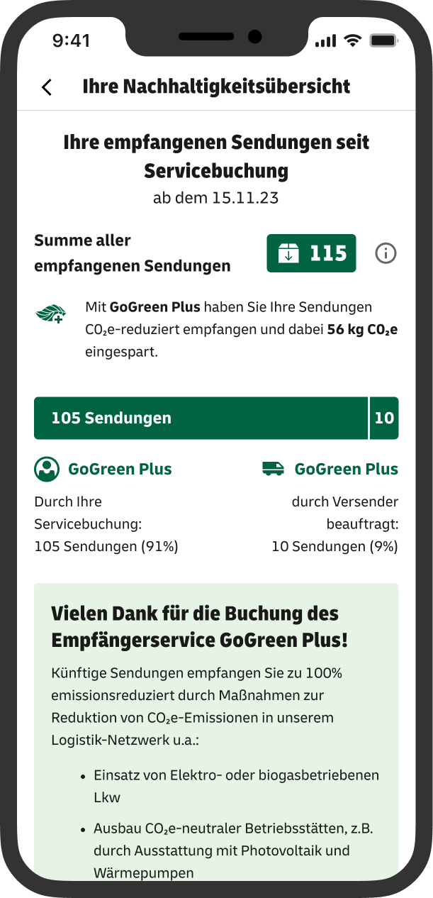 Alle registrierten DHL Kunden finden in Ihrem persönlichen Bereich im Kundenkonto eine individuelle Nachhaltigkeitsübersicht zu den empfangenen Sendungen.